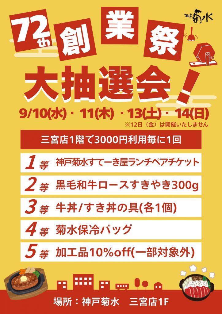 【神戸菊水 三宮店限定】2025創業祭のご案内✨ 開催日9/10・11・13・14
