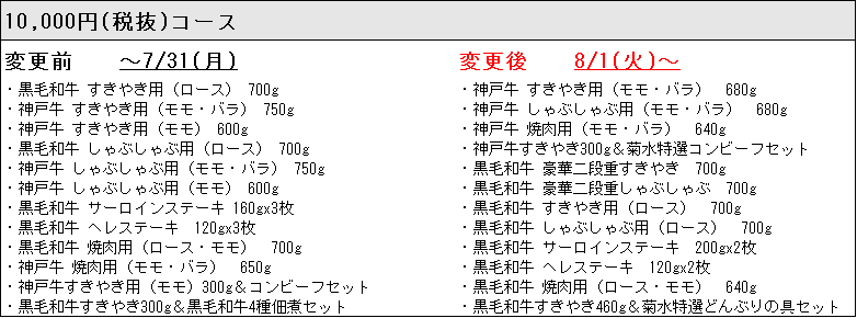 ※尚、20,000円コースにつきましては、新しく黒毛和牛の商品も増え、内容を充実しています。