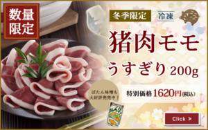 本日から、通販限定で猪肉モモうすぎり200gを特別価格で奉仕しています(#^^#)